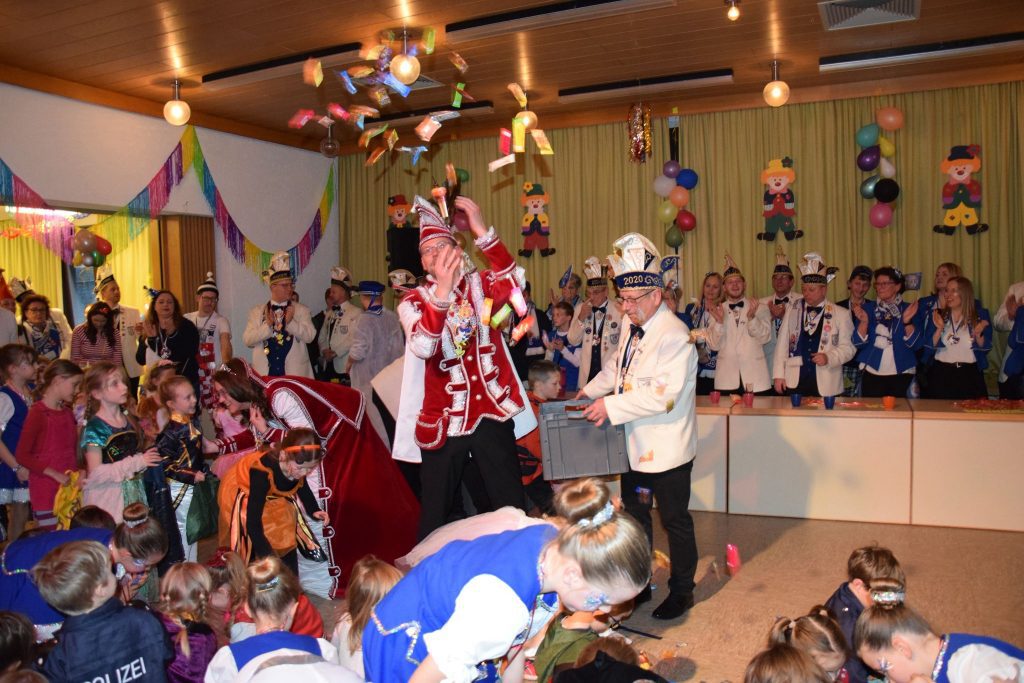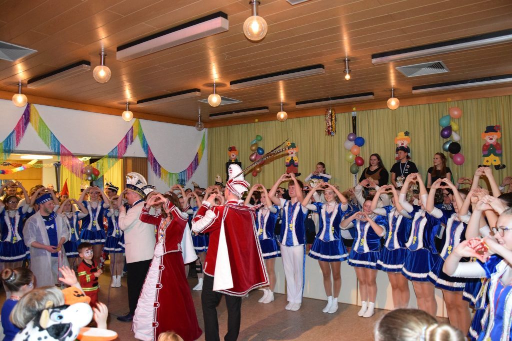 Ein besonderes Highlight bildete schließlich der feierliche Einzug des Prinzenpaares: Prinz Sven I. und Prinzessin Nicole III. zogen gemeinsam mit ihrem Elferrat, den Elferratsfrauen, den Wenter Zwergen und den Wenter Dominos in den Saal ein. Unter großem Jubel der Kinder übernahmen sie das Zepter und verbreiteten echte Karnevalsstimmung. Natürlich kamen sie nicht mit leeren Händen. Mit einer Kamelleschlacht wurde der Kinderkarneval dann beendet, sodass alle glücklich und mit vollen Tüten nach Hause gingen.