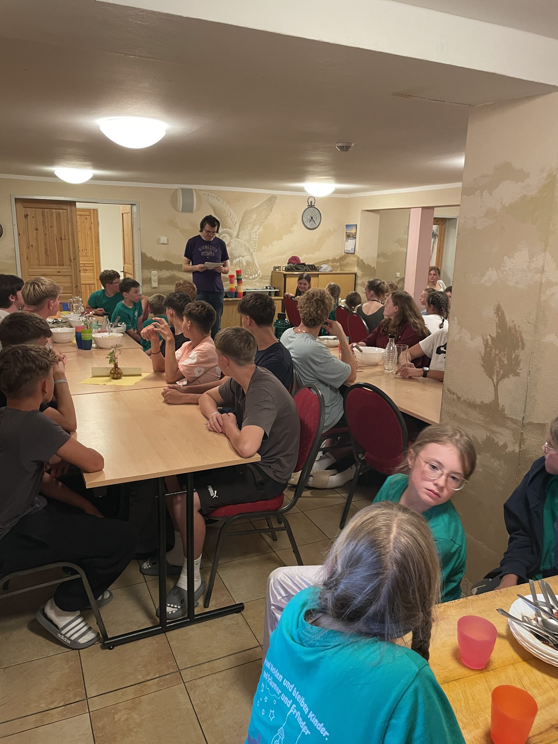 Um 7 Uhr morgens machten sich knapp 80 Menschen auf den Weg, um zwei wundervolle und abenteuerliche Wochen miteinander zu verbringen. Zur Busfahrt selbst kann man nicht viel sagen – außer, dass wir mit einem Bus gefahren sind und es etwas Stau gab. Gegen 19 Uhr sind wir schließlich angekommen.
