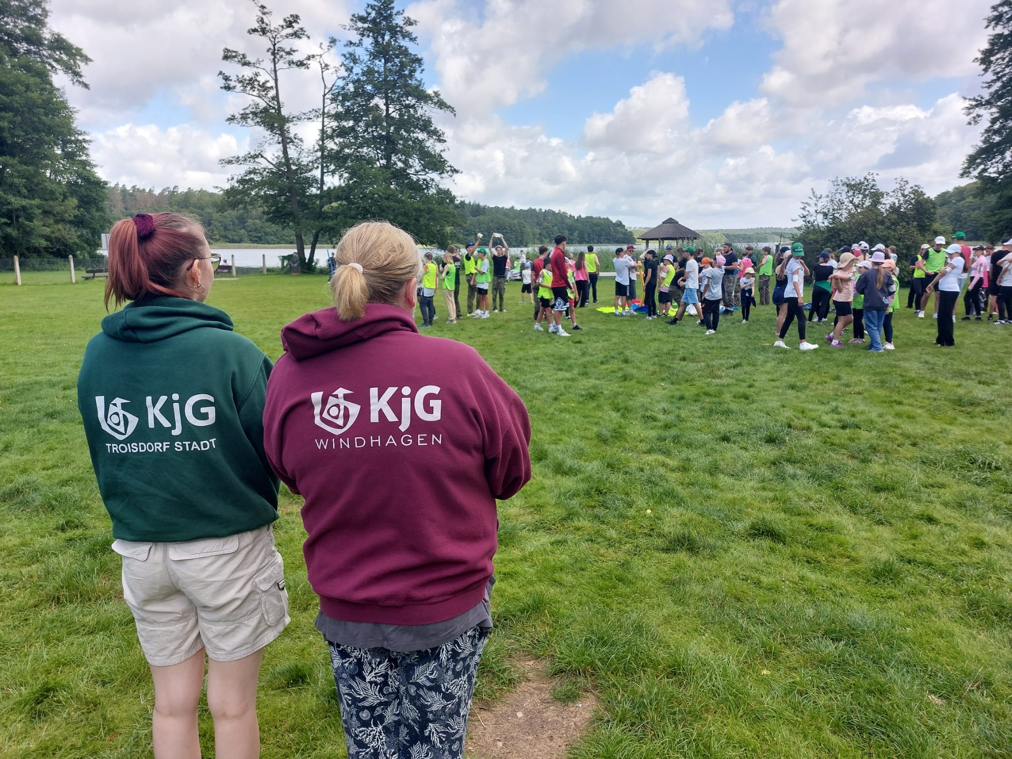 Nach zwei spannenden und actionreichen Runden sprang die Hälfte der Gruppe ins Wasser – das schöne Wetter musste schließlich genutzt werden! Einige andere, gemischt aus KjG Troisdorf und KjG Windhagen, zogen noch eine kleine CTF-Runde durch. Gemeinsam verweilten wir anschließend am See, bis das Mittagessen bei uns ankam und die Troisdorfer wieder aufbrachen. Vielen Dank für diesen tollen und lustigen Morgen!