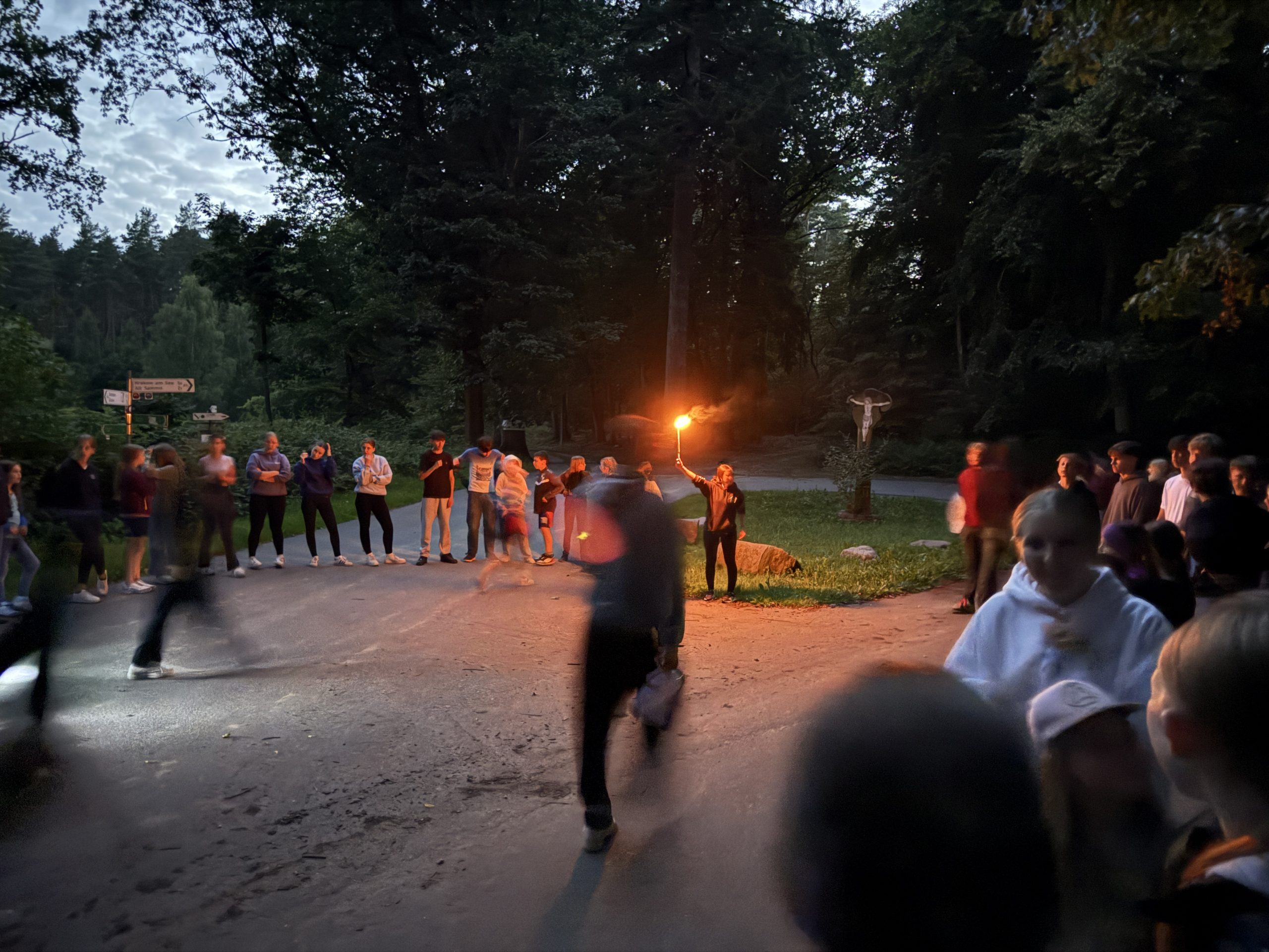10. August 2025Der heutige Tag startete als Mottotag, denn die Werwölfe sind ausgebrochen! Frei nach dem Spiel Werwolf fanden sich die Leiter in allen möglichen Rollen wieder: Werwolf, Dorfbewohner, Heilerin, Seherin usw. Die heutige Farbe des Impulses war Rot.Nach dem Frühstück ging es los mit einer riesigen Runde Wer wolf – und zwar mit dem gesamten Sommerlager draußen im Freien bei bestem Wetter. So ging es auch den restlichen Tag weiter: Alles, was gemacht oder angeboten wurde, hatte mit Werwolf zu tun oder war das Spiel selbst. Mittags gab es ein Stationenspiel, das ebenfalls an Werwolf angelehnt war. Die einzelnen Stationen waren nach den Rollen des Spiels gestaltet und inspiriert. So musste man bei der Station „Amor“ sich mit einem Seil aneinanderbinden und gemeinsam einen Parcours bewältigen, während man bei der Station „Jäger“ seine Treffsicherheit unter Beweis stellte. Nach dem Abendessen folgte das heutige Highlight: die Nachtwanderung des diesjährigen Sommerlagers. Hier gab es zwei Möglichkeiten – entweder eine entspannte Runde mit Taschenlampen und Knicklichtern durch den Wald oder die gruselige Variante des Spiels. Beides dauerte, wie erwartet, etwas länger, war dafür aber umso lustiger. Da wir heute alle etwas später ins Bett gekommen sind, steht morgen ein Gammeltag an – und dafür sind wir dankbar, denn heute markiert auch das Bergfest unseres Lagers.