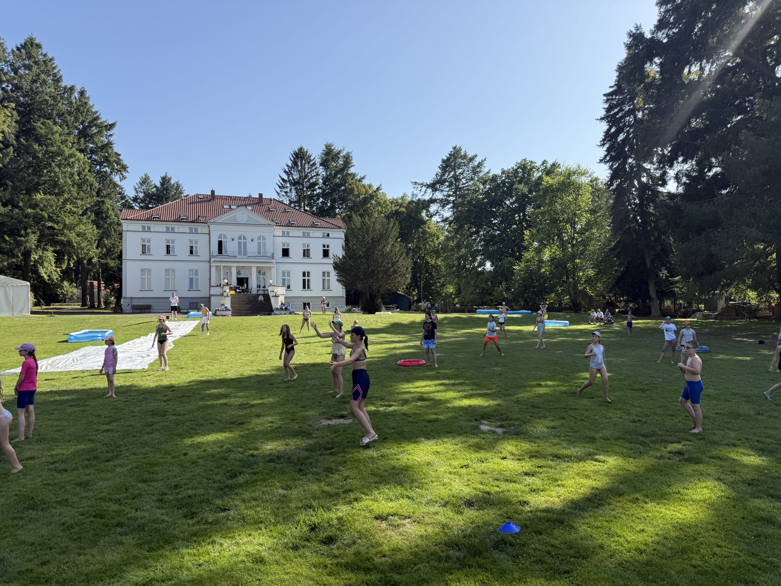 Zum krönenden Abschluss gab es, wie immer bei den Wasserspielen, das große gemeinsame Brennballspiel, bei dem die „Base“ aus kleinen Pools bestand. Am Ende wartete als Highlight eine riesige Wasserrutsche. Letztendlich lässt sich sagen niemand ist trocken geblieben.